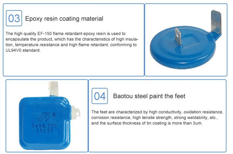 Oksidli Varistor 385v SPD uyi to'lqinlardan himoyalanuvchi seramika ma'lumotlar varaqasi himoya fabrikasi UL E335803 yuqori voltli kuchlanishdan himoya qiluvchi metall oksidi Varistor 34S-C-LV U1MA (V): 80-1800 UAC: 60-1000